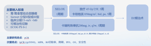 围手术期治疗能提高局部进展期患者的生存,但是目前对于胃癌患者,新辅助化疗和新辅助同步放化疗的病理完全缓解(pCR)仍然较低(2%-16%),鉴于PD-1单抗在晚期胃癌一线治疗中显著提升生存,本研究探索在同步放化疗的基础上联合卡瑞利珠单抗用于胃癌新辅助治疗的疗效和安全性。
