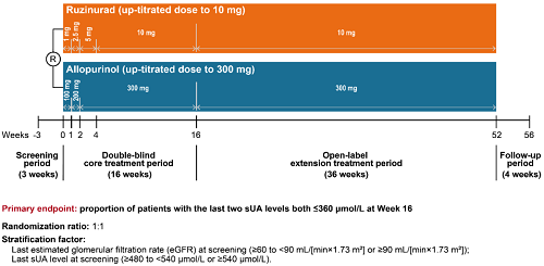 1. Ruzinurad for hyperuricemia associated with primary gout: a multicenter, randomized, double-blind, active, controlled, phase 3 study. 2025 EULAR OP0302.